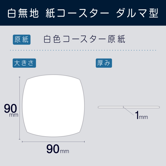 | 製品名: | 紙 コースター 白無地 ダルマ型 90/1mm |