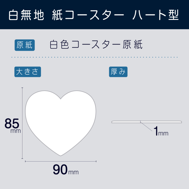 | 製品名: | 紙 コースター 白無地 ハート型 90/1mm |