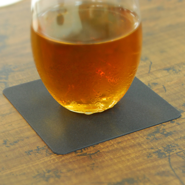 真っ黒な紙コースター、安定感のある角型です。おしゃれで落ち着いた雰囲気を演出します。和にも洋にもマッチします。
