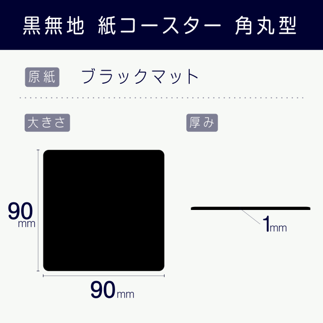 | 製品名: | 紙 コースター 黒無地 角丸型 90/1mm |