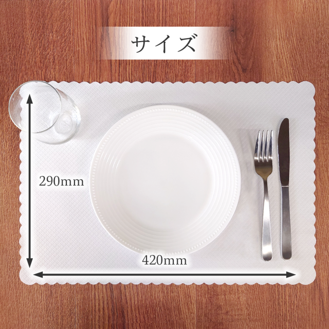 使いやすい紙のランチョンマットです。食器やカトラリーをアレンジしやすい大サイズです。