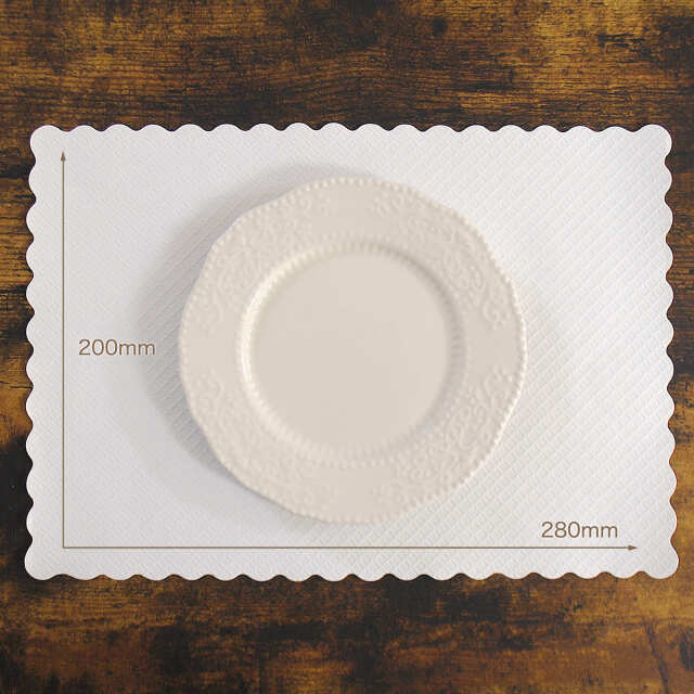 | 製品名: | 紙 ランチョンマット 小サイズ 白 波型 S-35 |