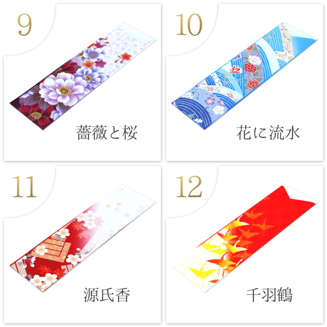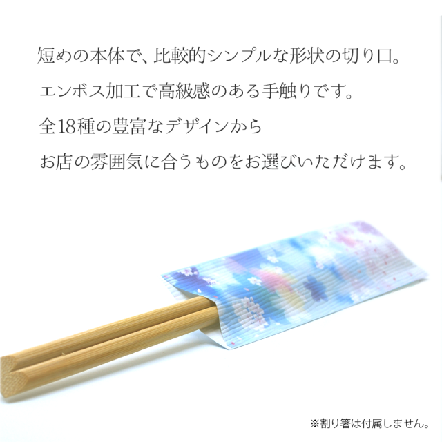 きもの柄の箸袋です。全18種の豊富なデザインから、お店の雰囲気に合ったものをお選びいただけます。