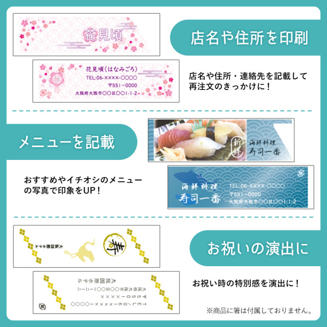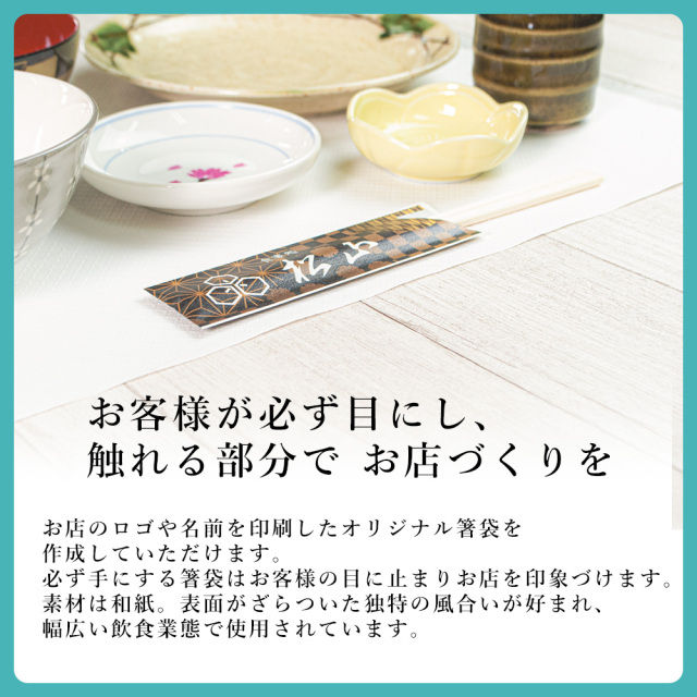 お店の名前やロゴを箸袋に印刷し、お店オリジナルの箸袋を作成いたします。