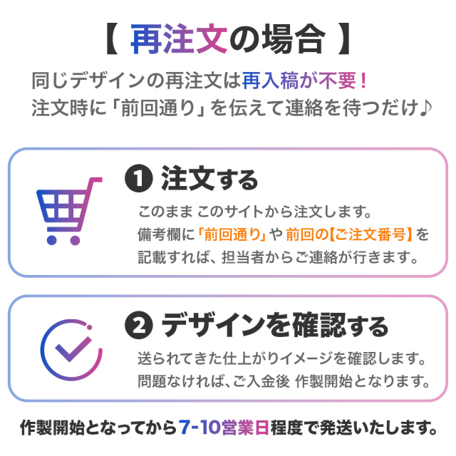 | 納期 | デザイン確定後、7〜10営業日程度 |
