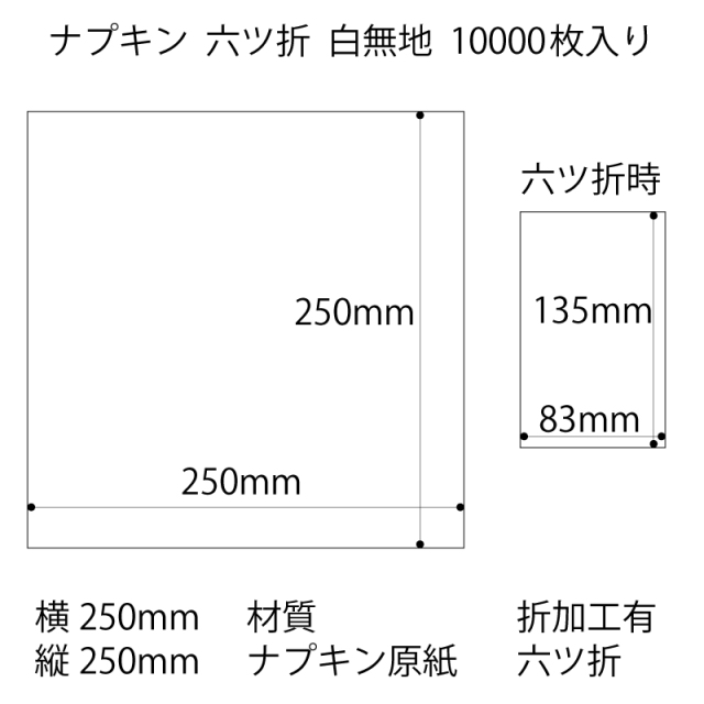 | 製品名: | 六ツ折 紙ナプキン 白無地 10,000枚 |