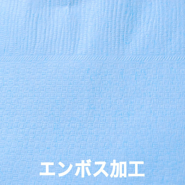 カフェやレストランでおなじみの紙ナプキンの六ツ折タイプです。エンボス加工済みで上品な使い心地です。爽やかなブルーが清潔感を演出します。1万枚の大容量ですので業務用としてご利用ください。