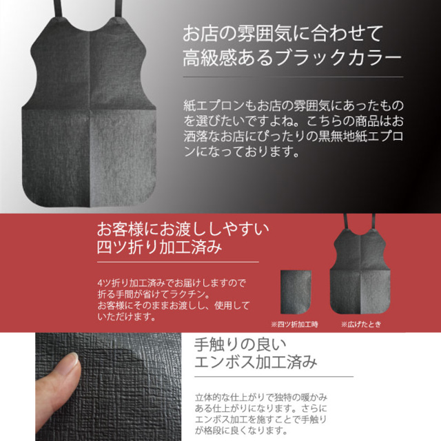 | 製品名: | 紙 エプロン 小サイズ 黒無地 S-2 4ツ折 |