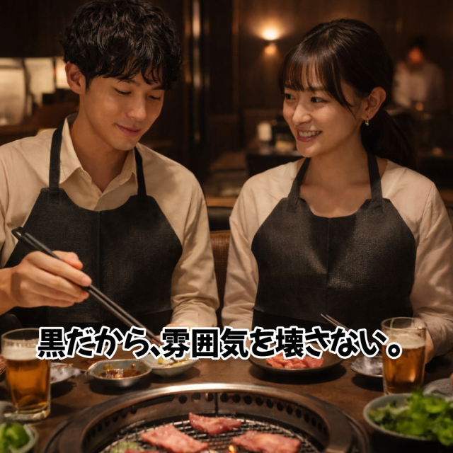 シンプルで清潔感のある黒エプロンで、ワンランク上のおもてなしを提供できます。